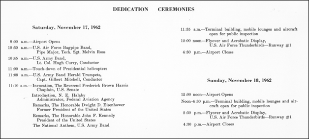 Our graduating class numbered somewhere around 400, and about 90 attendees (including some spouses) attended the reunion at a hotel near Dulles Airport. This airport opened in November of 1963, during my sophomore year in high school. Here’s the program for the dedication ceremony
