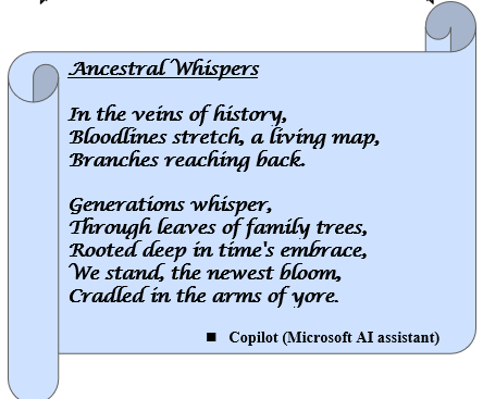I also asked Copilot to write me a poem about genealogy for inclusion in a book I was working on. Here’s the poem it wrote: