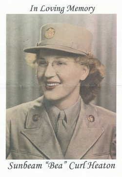 In summary, Sunbeam "Bea" Curl Heaton is pictured in a World War II-era U.S. military uniform, and the photo was likely taken during the 1940s when she was in her mid to late 20s or early 30s. This image has been used for her memorial, signifying her remembered service.