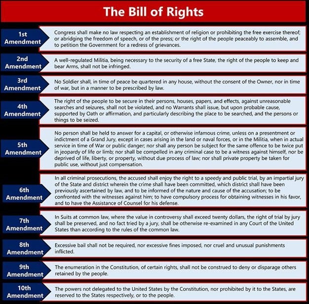 Here’s a quick summary of the most relevant parts of the Bill of Rights when you’re talking about due process: