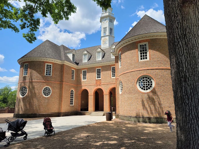 The 1930s-era reconstruction of the Capitol was based on what the Capitol looked like from 1704 until it burned in 1747. The first capitol had more comprehensive and detailed architectural documentation compared to the second capitol – including the Bodleian Plate.
