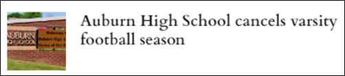 The story reports that for the third time in the last four years, Auburn will not complete a varsity football season. Unlike in 2021 and 2022, when the high school halted things halfway through their schedule, school officials have decided to cancel its 2024 varsity season, which was scheduled to begin August 30. This is the first time that there will be no varsity football squad at Auburn since the school began play in 1976.
