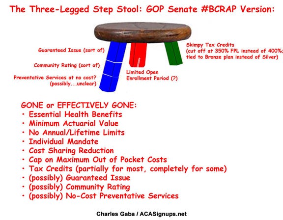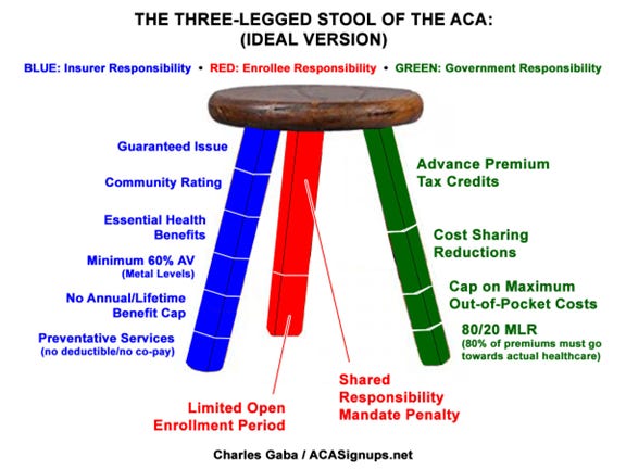 GOP efforts have continued to attack the three legs of the stool without any plan to actually build a new stool. The two diagrams below show the original plan compared to the plan supported by the GOP in 2017.