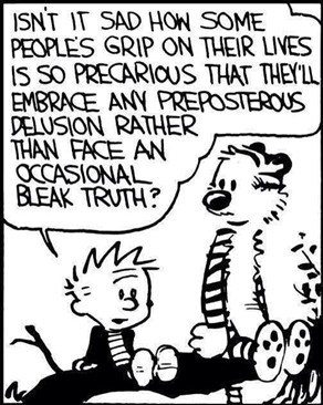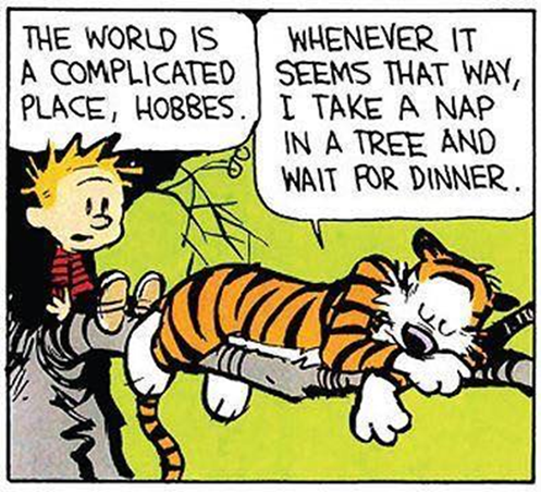 I always find the philosophy of Calvin and Hobbes useful. (I dived down a bit of a rabbit hole yesterday to see if the cartoon characters Calvin and Hobbes represent the philosophical positions of theologian John Calvin (founder of Congregationalism and Presbyterianism) and early enlightenment philosopher Thomas Hobbs. They apparently do not.)