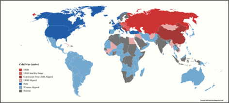 The 50-year Cold War (between the end of World War II and the mid-1990s) featured a similar carving-up of the world into spheres of influence. Here’s what the global alliances looked like in 1980.