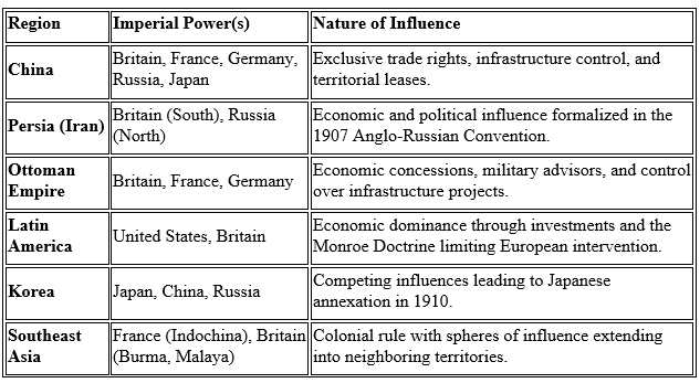 During the Age of Imperialism (late 19th century), the powerful nations of the world claimed exclusive rights or privileges – usually economic or political – to a region or territory without directly governing the area as a colony.