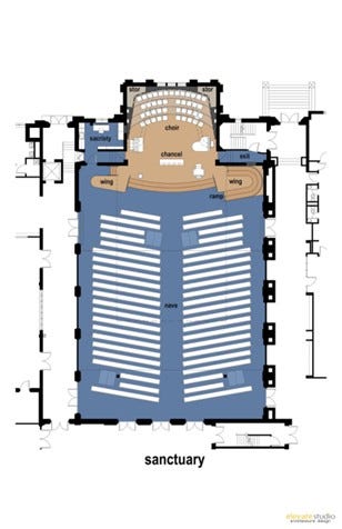 Today, the word “sanctuary” officially refers to the part of a church where the altar is located and where the worship leaders do their thing. Unofficially, the word usually encompasses the altar and nave of a church — not only the (usually) raised altar, but the seating and aisles as well.
