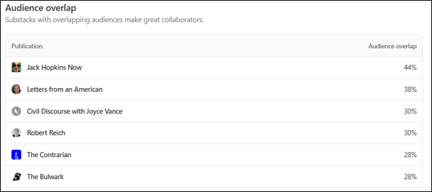 At the beginning of the year I had 214 subscribers and 1,011 followers. Subscribers receive an email each time I post an essay; followers see my essays in their Substack feeds (a social media type feed) each time I post an essay. Today I have 373 subscribers and 5,155 followers. I had a surge in followers and subscribers in October, when Jack Hopkins, a Substacker with more than 59,000 subscribers, recommended my Substack on the landing page for new subscribers to his Substack. I get a handful of new followers every day who come to me through his recommendation, and another handful of subscribers every week or so.