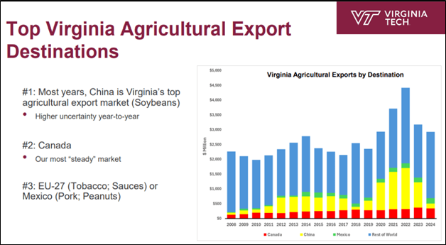 $7.6 million federal pass-through grant for fiscal year 2025 from the Virginia Department of Agricultural and Consumer services was terminated. This action is expected to cause agricultural producers to lose millions in sales, and people in need will no longer receive fresh food through the agency’s food box program;