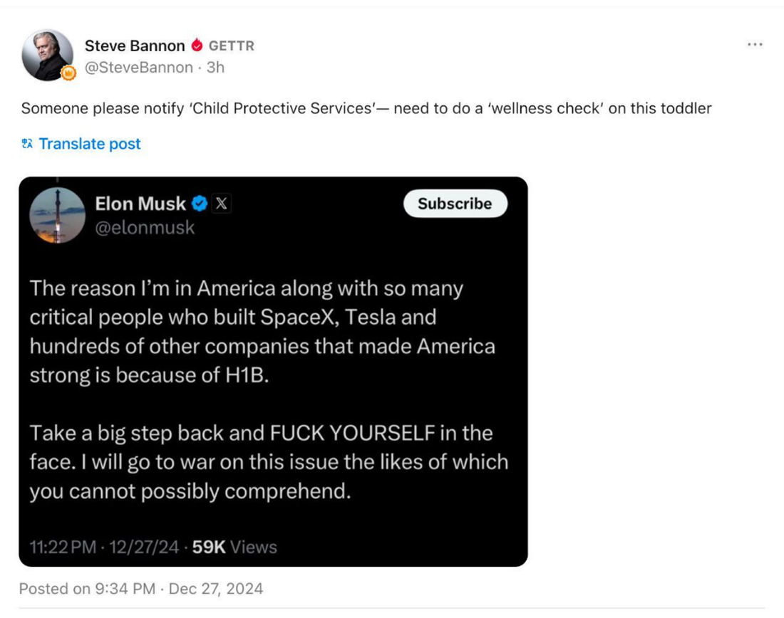 And let’s not forget Laura Loomer, who was MAGA before Musk and Ramaswamy. She believes that these latecomers to the movement are betraying its ideals and wants them both out. Meanwhile, the original MAGAT criticizes the new guy in town, who then responds in exactly the way you would hope to hear from the guy who’s going to help make the country great again.