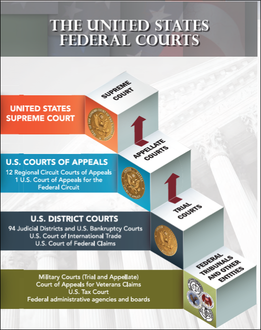 I found this graphic in a document I looked at this morning. Here’s the link to the document so you can read it for yourself. https://www.uscourts.gov/sites/default/files/understanding-federal-courts.pdf
